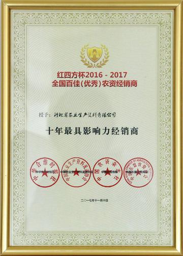 全國百佳(優(yōu)秀)經(jīng)銷商“十年最具影響力經(jīng)銷商” |
