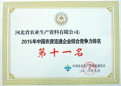 中國農(nóng)資流通企業(yè)綜合競爭力排名第11名 |