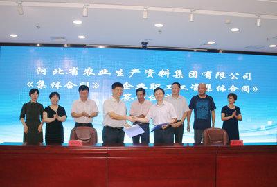 本網(wǎng)訊 8月2日上午,集團公司在農(nóng)資大廈第一會議室舉行《集體合同》、《工資集體合同》簽訂儀式,企業(yè)方與職工方協(xié)商代表、監(jiān)督檢查小組成員、勞動爭議調(diào)解委員會成員、集團公司職工代表出席。雙方首席代表,集團公司董事長、總經(jīng)理李平現(xiàn),集團公司工會主席鄭占山分別代表企業(yè)方和職工方在《集體合同》、《工資集體合同》文本上簽字。集團公司黨委副書記彭國江主持。
