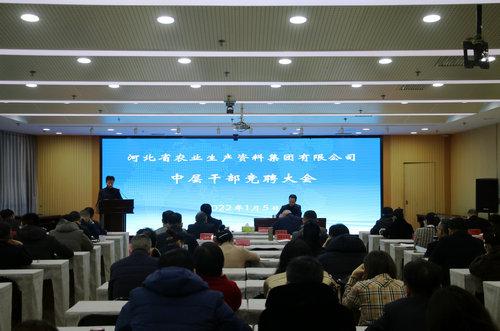 本網(wǎng)訊 為深入落實集團公司“一主兩翼”發(fā)展戰(zhàn)略,進一步完善集團公司體制機制,凝聚干事動力,激發(fā)創(chuàng)新活力,2022年1月5日,河北省農(nóng)資集團公司在河北農(nóng)資大廈召開2022年度中層干部競聘大會。集團公司常務(wù)副總經(jīng)理馬朝輝主持會議,全體班子成員和職工參會。