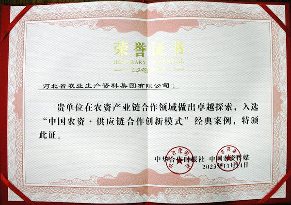 集團(tuán)公司入選“中國農(nóng)資產(chǎn)業(yè)鏈合作創(chuàng)新模式上榜企業(yè)”榜單