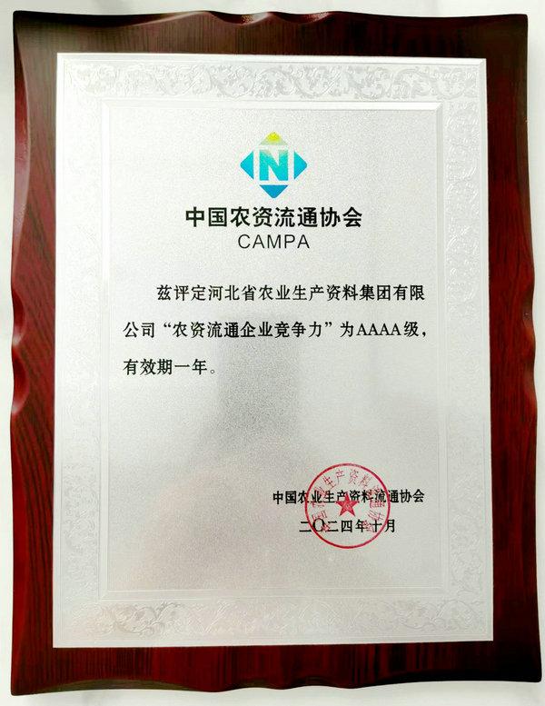 喜報(bào)|集團(tuán)公司榮獲“2024年度農(nóng)資流通企業(yè)競爭力AAAA級(jí)”等多項(xiàng)榮譽(yù)