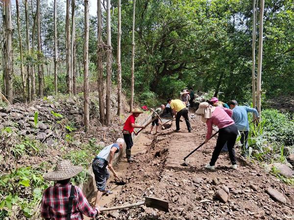 廣西武宣縣東鄉(xiāng)鎮(zhèn)屯應(yīng)村黨員干部與群眾一起修水渠抗旱。雷正曉 攝