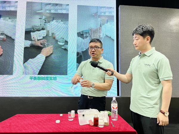華中農(nóng)業(yè)大學(xué)植物營(yíng)養(yǎng)學(xué)博士、國(guó)家生物肥料工程技術(shù)研究中心成員陳治國(guó)博士深入解讀聚谷氨酸對(duì)土壤及植物生長(zhǎng)的改良,結(jié)合唐山市灤南縣土壤特性,詳細(xì)解讀了豐與安玉米專用肥的技術(shù)創(chuàng)新優(yōu)勢(shì)。豐與安玉米專用肥通過添加聚谷氨酸成分,肥料可提升土壤保水保肥,調(diào)酸調(diào)堿,增加養(yǎng)分利用,尤其在沙土、鹽堿土質(zhì)地區(qū)增產(chǎn)效果顯著,以科學(xué)數(shù)據(jù)和現(xiàn)場(chǎng)實(shí)驗(yàn)為農(nóng)戶答疑解惑,提升產(chǎn)品可信度。